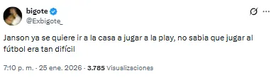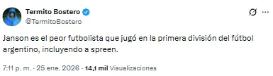 “El partido de Janson es un insulto al hincha”, expuso uno de los fanáticos. Otro, resumió: “Janson es el peor futbolista que jugó en la Primera División del fútbol argentino, incluyendo a Spreen”.