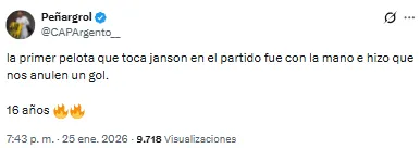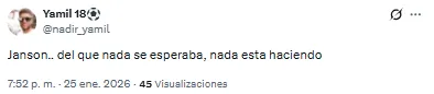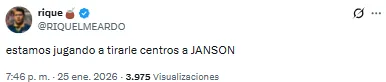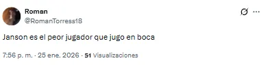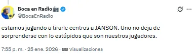 Pero no todo fue color de rosa este domingo en la Bombonera. Es que las redes sociales se inundaron de hinchas de Boca que criticaron la labor de uno de los titulares ante Riestra: Lucas Janson. El delantero tuvo la oportunidad de volver a ser titular, pero no rindió y tampoco pasó desapercibido.