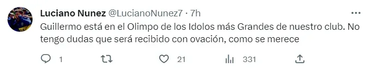“El domingo vuelve Guillermo a la Bombonera post Madrid y se llevará la ovación mas grande de su vida”, aseguró un hincha en Twitter. “El pueblo no olvida a quien no lo traiciona”, soltó otro simpatizante. “La ovación será total”, expresó otro usuario.