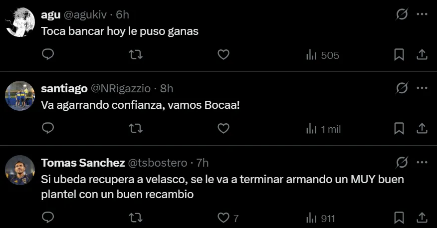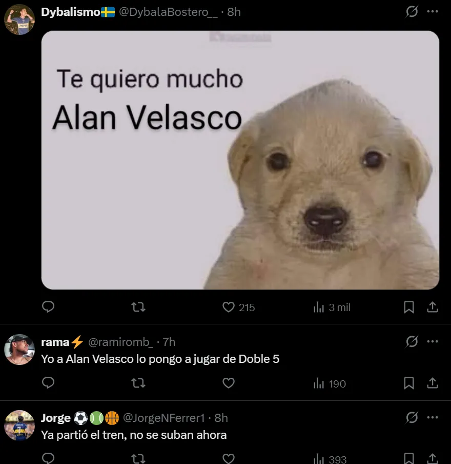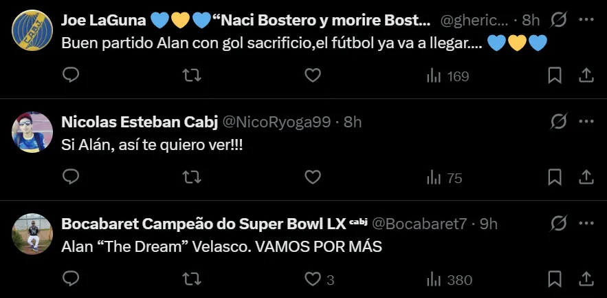 Los hinchas de Boca se ilusionaron en las redes sociales con el partido de Alan Velasco. Si bien estuvo en el ojo de la tormenta desde su llegada por los 10 millones de dólares que el club pagó por su pase, la realidad es que hasta el momento no había tenido el nivel esperado.