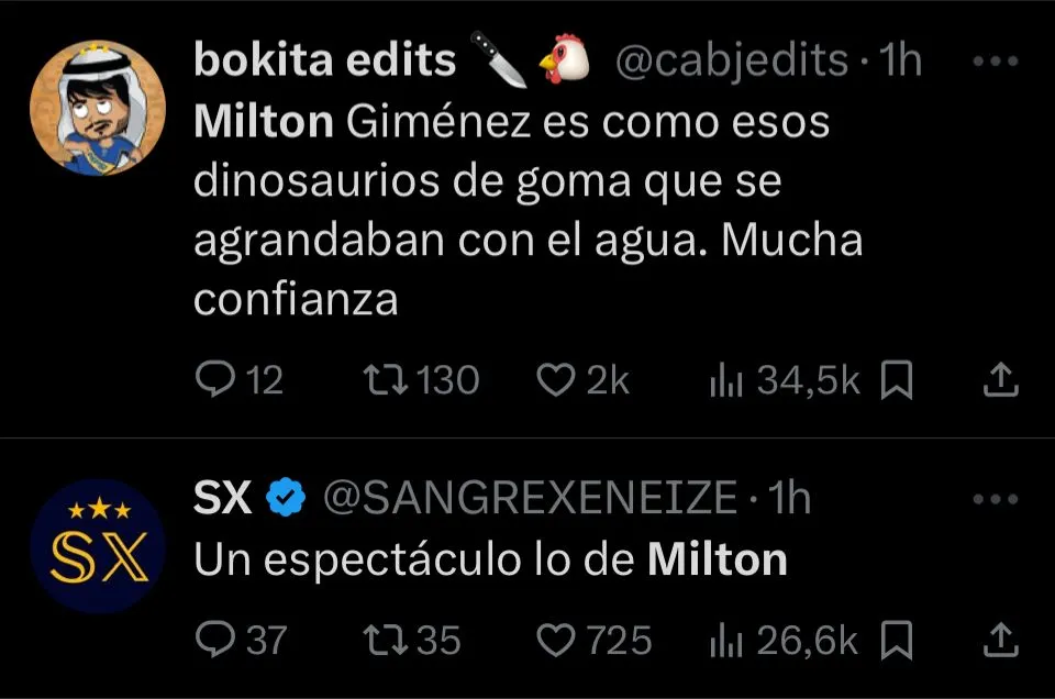 Con el correr de los minutos, cuando la euforia inicial menguó, se le dio paso a análisis más profundos. “Lo bien que le viene un partido así para asentarse en el equipo. Con confianza, ciertos jugadores marcan la diferencia“, reflexionaba un usuario, valorando el envión anímico para el delantero. A su vez, no tardaron en aparecer los memes y reacciones ingeniosas que celebraban la actuación de Giménez para cerrar una noche redonda para el elenco azul y oro.
