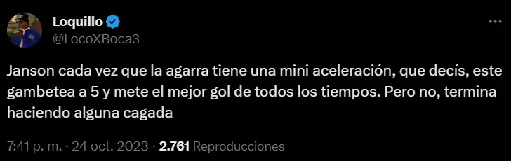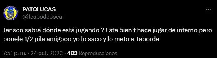En medio de ese panorama, los hinchas de Boca no tuvieron piedad con uno de los jugadores que vieron acción contra Racing en Avellaneda. Por intermedio de las redes sociales, los fanáticos del equipo de Almirón cargaron las tintas contra Lucas Janson, quien no jugó en su posición más habitual y quien terminó redondeando un rendimiento bastante adverso.