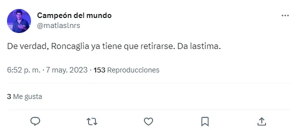 Quien fue criticado duramente en las redes, y no es la primera vez, es el defensor central Facundo Roncaglia, que ya en el partido ante Colo Colo por Copa Libertadores también fue tendencia por la misma situación.