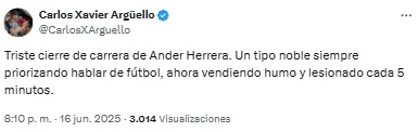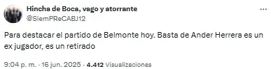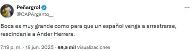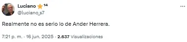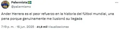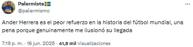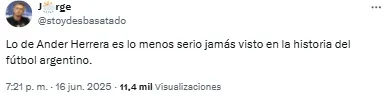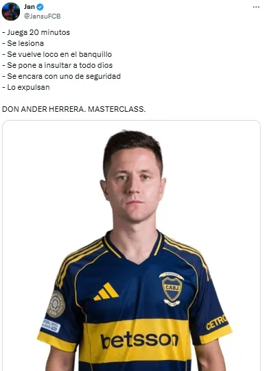 “Ander Herrera es el peor refuerzo en la historia del fútbol mundial. Una pena porque genuinamente me ilusionó su llegada”, destacó uno de los usuarios. Otro, en cambio, resumió su pasaje por el Xeneize: “Tiene más lesiones que minutos jugados con la camiseta de Boca”.