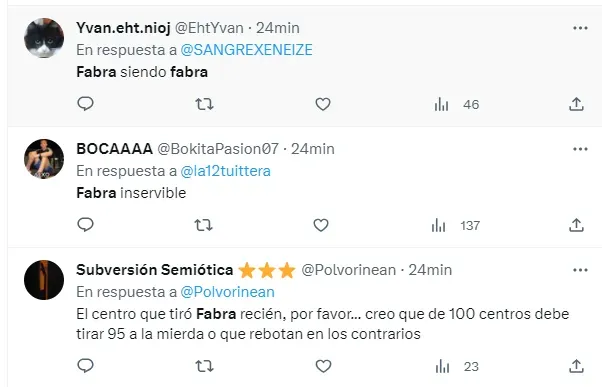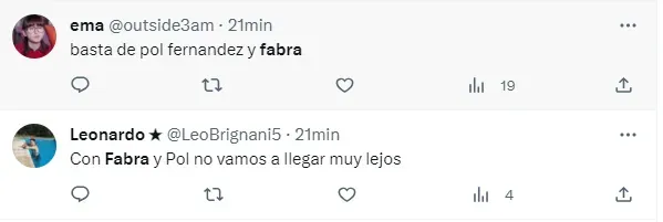 “Fabra inservible”, “No tiene sentido la diferencia que hay entre el mejor y el peor nivel de Fabra”, “Fabra no puede jugar contra Palmeiras , me bajo de este barco”, fueron algunas de las tantas críticas para con el lateral izquierdo que lleva 7 años en la institución.