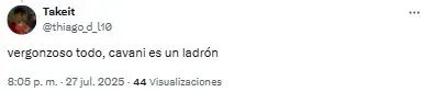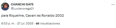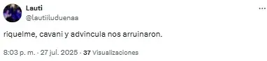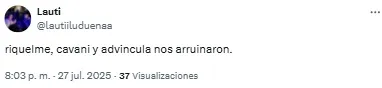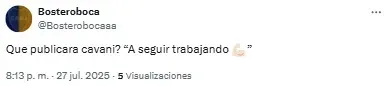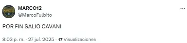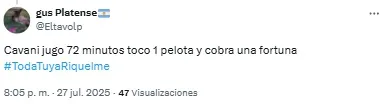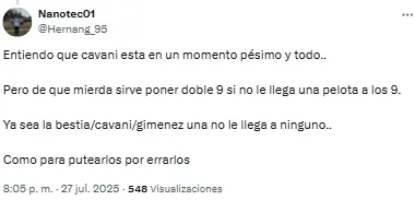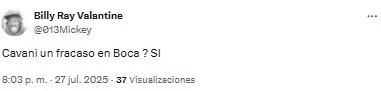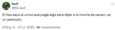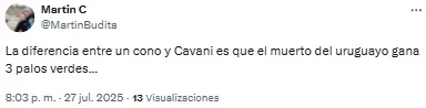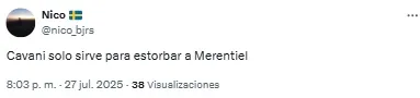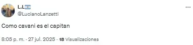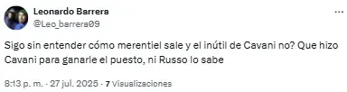 En redes sociales, los hinchas volvieron a criticar la labor de los de azul y oro y Edinson Cavani fue uno de los titulares más apuntado. “Es un estorbo para Merentiel”, destacó uno de los usuarios en referencia a la polémica salida de la Bestia de cara al complemento.