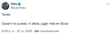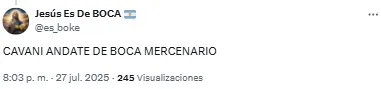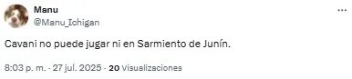 “Cavani no puede, ni debe jugar más en Boca”, sintetizó otro de los hinchas. Un tercero fue más allá y se expresó con una chicana: “No puede jugar ni en Sarmiento de Junín”.