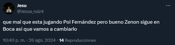En ese contexto, los hinchas de Boca se hicieron sentir por intermedio de las redes sociales. Y, fundamentalmente, cargaron contra la figura de uno de los principales referentes del plantel como Guillermo Pol Fernández, que no tuvo un buen partido.