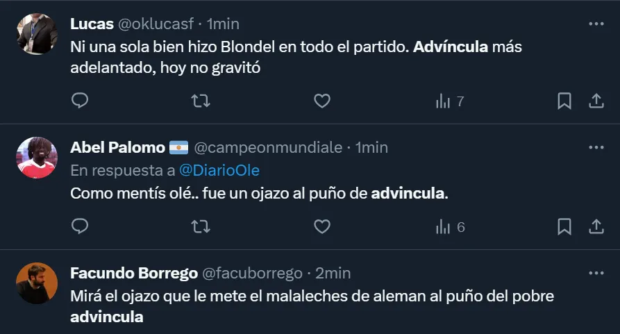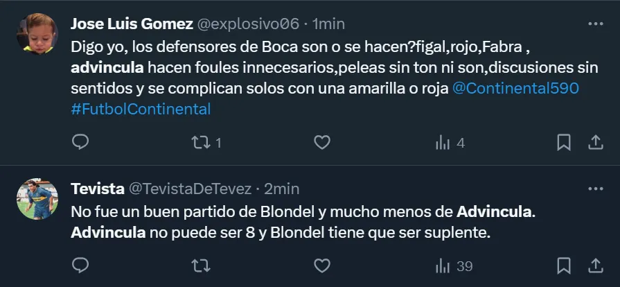 Los comentarios de los hinchas de Boca contra Advíncula