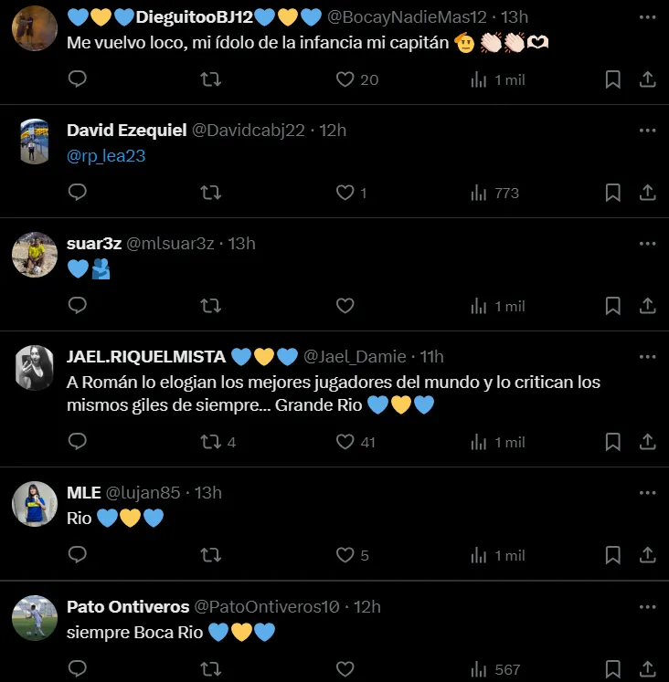 El ex marcador central de Manchester United y la Selección de Inglaterra respondió al video de Riquelme cantando con el emoji de una cabra, que en inglés quiere decir Goat, las siglas de greatest of all time (el más grande de todos los tiempos). Los fanáticos del Xeneize no tardaron en plagar el comentario del ex futbolista con corazones azules y amarillos y decenas de comentarios elogiándolo.