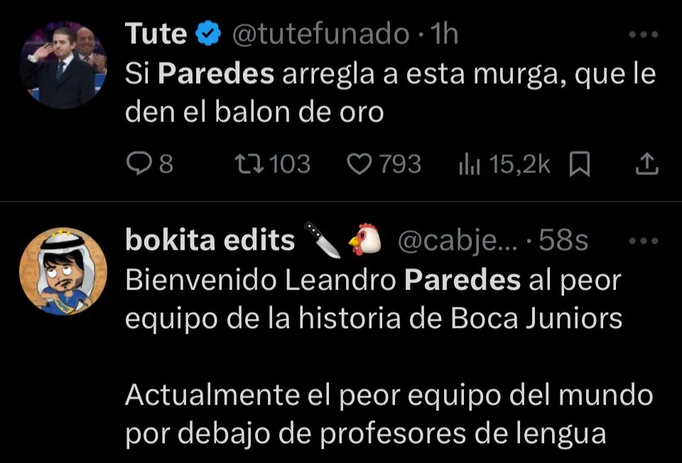 Igualmente, hasta fanáticos xeneizes, frustrados por el rendimiento colectivo del equipo, recurrieron al humor para canalizar su disgusto. Incluso hubo quienes bromeaban con que Paredes ya estaría arrepintiéndose de su vuelta. Aunque, más allá del show en redes, el volante surgido en el club también tuvo tiempo para dejar su huella en el campo. Es que fue el encargado de ejecutar el córner que terminó en el cabezazo de Lautaro Di Lollo para el 1-1 final. Un detalle que también colaboró a la reacción de redes sociales.