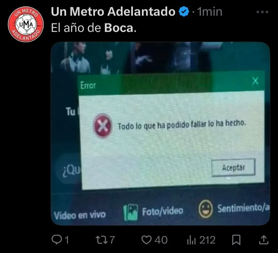 El gol que sentenció la noche fue un bombazo de Matko Miljevic desde afuera del área, mientras Boca mostraba una versión desorientada que empieza a hacerse costumbre. Ya son siete partidos los que acumula Miguel Ángel Russo en este tercer ciclo sin poder festejar, y el equipo parece cada vez más lejos de encontrar respuestas. En las redes, los memes no tardaron en aparecer: algunos hinchas intentaron tomarse con humor el mal momento, mientras que los de River aprovecharon la oportunidad para lanzar sus habituales chicanas.