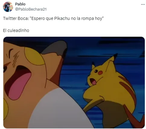 Pero Pikachu fue el gran protagonista de las cargadas a Boca. Las imágenes de Pokémon apuntaron contra los dirigidos por Martínez, que ya piensan en la semifinal de la Copa de la Liga ante Estudiantes, el próximo martes 30 de abril.