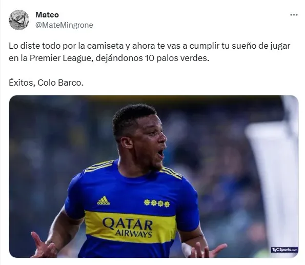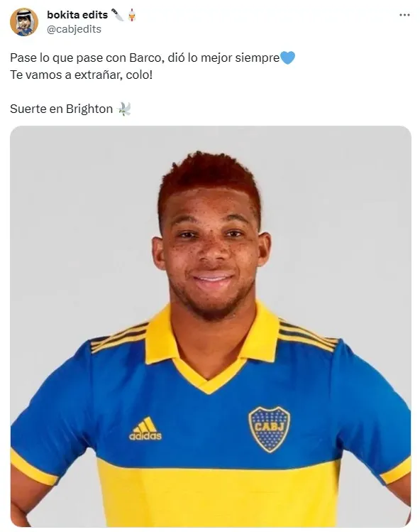 No obstante, entre tanta preocupación, hay quienes se toman este momento con humor para hacer bromas en redes sociales. En Twitter se ha visto más de un meme sobre la posible marcha de Barco al fútbol europeo, desde fotos editadas de otros jugadores para “confundir” al Brighton hasta la ironía por el interés del club inglés en jugadores del club, como sucedió con Alexis Mac Allister. Una forma divertida de tomarse una partida sensible como la del “Colo”.