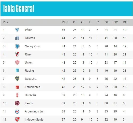 - Liga Profesional: 11 de las 27 fechas del torneo local ya se completaron y Boca se ubica en la octava posición, a 6 puntos del líder Huracán. Hay un boleto asegurado para el campeón de esta competencia.