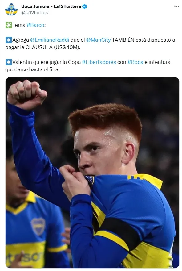 Es que, según dio a conocer el periodista Emiliano Raddi, Manchester City también está dispuesto a aportar el dinero necesario para ejecutar la cláusula de salida por Valentín Barco y la presión al Xeneize en estos momentos es máxima, aunque intentará defender su patrimonio y, por supuesto, la postura de la joya. ¿En qué terminará esta novela?