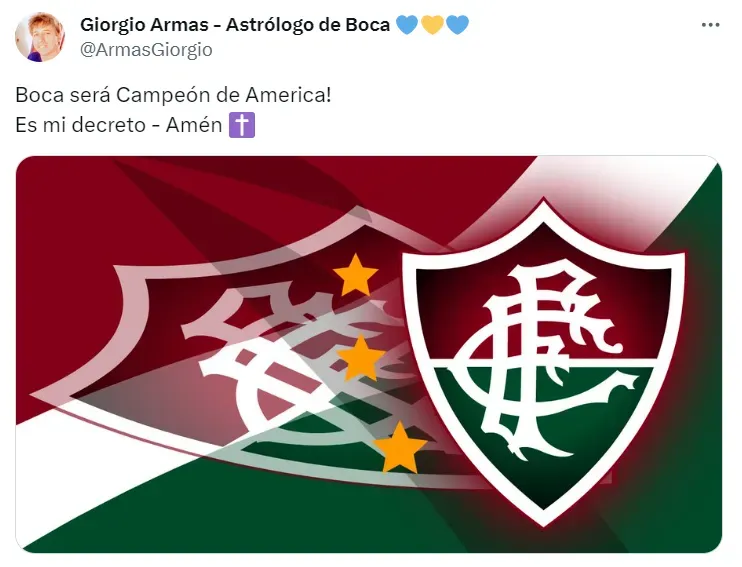 En la extensa charla con Bolavip, Armas también confesó que existe mucha brujería del lado brasileño en favor del Fluminense y que, consecuentemente, están preparados. Eso sí, recomendó que el 11 titular salga a la cancha con colores claros: “Con remera azul y short amarillo, Boca gana en los 90 minutos. Con la vestimenta clásica, hay predisposición a los penales. Siempre que existan elementos de aire o agua, como ahora que la luna está en escorpio, se recomiendan los colores claros”.