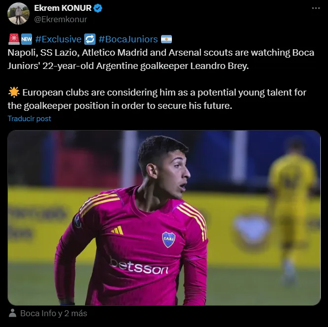 En base a la información que brindó el periodista Ekrem Konur, equipos como Napoli y Lazio en Italia, Atlético de Madrid en España y Arsenal en Inglaterra tendrían en carpeta a Leandro Brey. El jornalista añade que los cuatro clubes lo tienen en la mira pensando en un proyecto de arquero para el futuro.