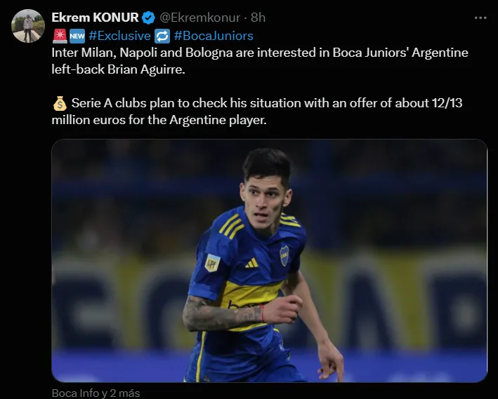 Más allá de interés concreto de Inter, el periodista Ekrem Konur expresó que los neroazzurros tienen competencia en Italia, ya que Napoli y Bolonia también estarían interesados en fichar a Aguirre en el próximo mercado de pases, e incluso dispondrían de 13 millones de euros para ficharlo si finalmente deciden avanzar por él.