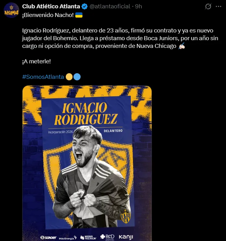 Ahora, el delantero que venía de disputar 28 partidos y marcar 6 goles con El Torito de Mataderos fue anunciado como flamante refuerzo de Atlanta para volver a jugar otra temporada en Primera Nacional. El préstamo que el Bohemio acordó con Boca será por todo el año, sin cargo ni opción de compra.