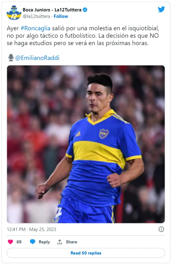 Resulta que Roncaglia terminó la primera parte con una molestia en el isquiotibial, lo que obligó a Almirón a sacarlo. El jugador llegó a Buenos Aires y no se realizó estudios, pero aguardarán a ver cómo responde en el próximo entrenamiento para evaluarlo.