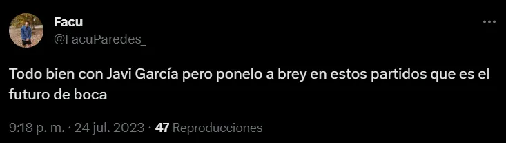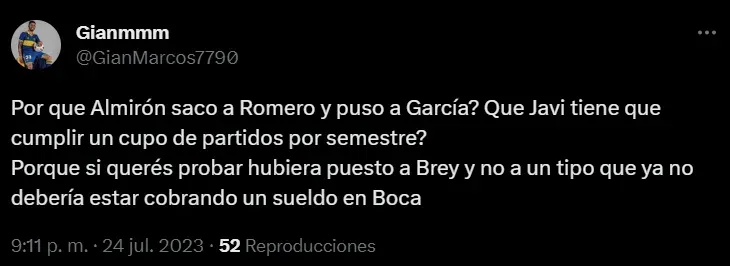 Así las cosas, por intermedio de las redes sociales, los hinchas de Boca se indignaron por la titularidad de García y pidieron por un arquero que no jugó ni un minuto en el torneo: Leandro Brey.
