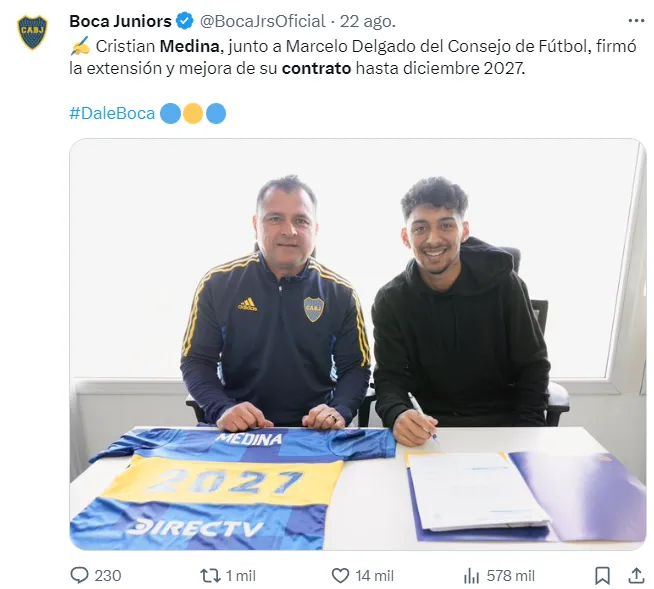 Más allá de que puertas adentro saben que Medina es importante, el volante no fue declarado intransferible y podría irse en este mercado si llega algo económicamente interesante. La decisión de Juan Román Riquelme y el Consejo de Fútbol es venderlo únicamente si se hace uso de la cláusula de rescisión.
