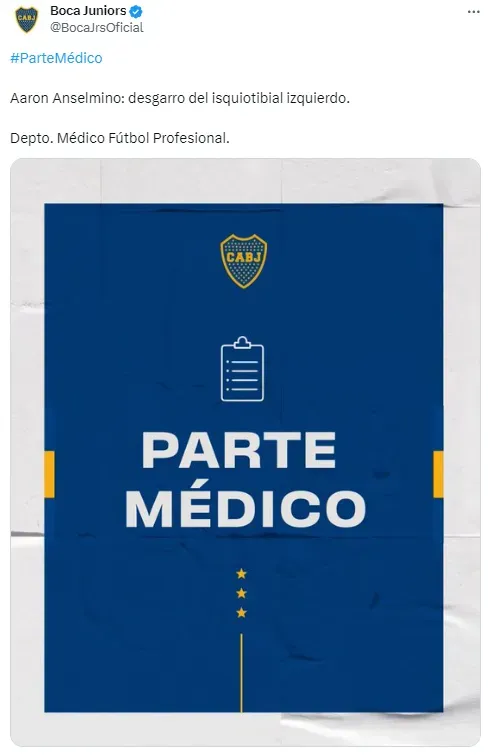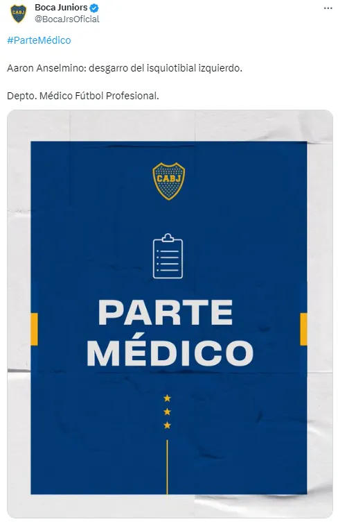 “Desgarro del isquiotibial izquierdo“, hizo oficial el Xeneize. La lesión marginará a Anselmino por las próximas tres o cuatro semanas. Así, Martínez pierde a una pieza importante para la rotación del equipo en medio de la agitada agenda que afronta el plantel.