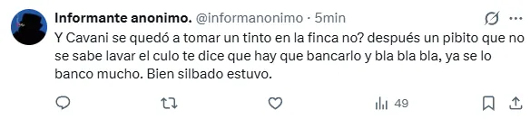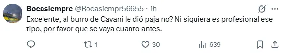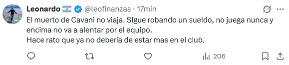 La noticia no cayó bien entre los simpatizantes, que no dudaron en cuestionar la actitud de Cavani en las redes sociales. “Que se vaya cuanto antes”, “bien silbado estuvo”, “no juega nunca y encima no va a alentar al equipo”, fueron algunas de las reacciones de los fanáticos.