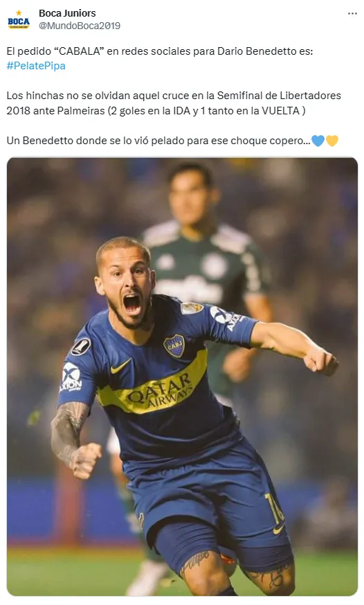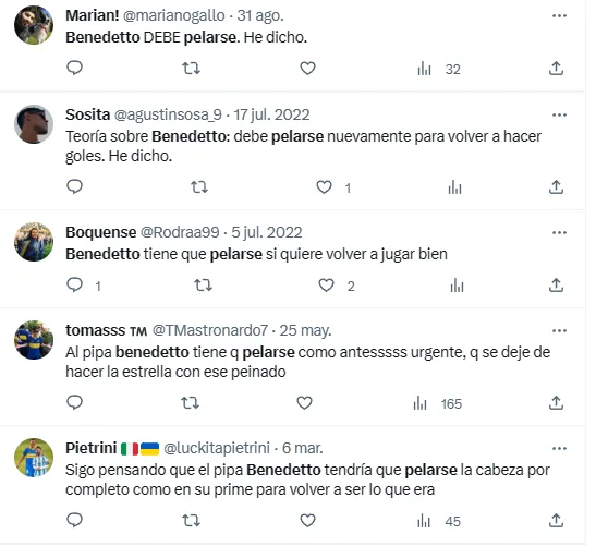 La teoría que crearon los hinchas de Boca en redes sociales gira en torno a un look que el Pipa no usa desde su anterior etapa en el Xeneize: un rapado casi al cero. Curiosamente, más de un fanático del club de La Ribera le atribuyen el mal momento futbolístico de Benedetto a su corte de pelo. Creer o reventar.