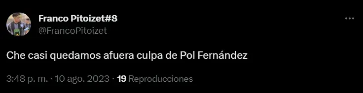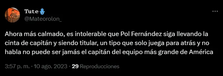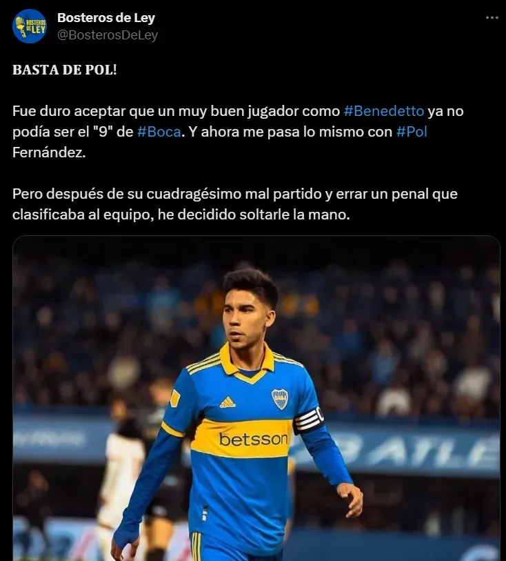 Sin embargo, paralelamente, un futbolista que estuvo desde el arranque contra el combinado uruguayo no conformó y nuevamente recibió la desaprobación de los fanáticos de Boca. Inclusive, pese a la clasificación y al paso de las horas, sigue siendo tendencia.