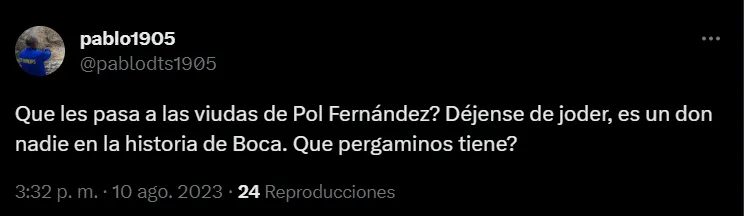 Se trata de Pol Fernández, experimentado mediocampista de 31 años de edad que, pese a haber surgido de las divisiones inferiores de Boca, no está siendo mimado por los hinchas del club Xeneize. Por el contrario, es criticado de manera contundente.