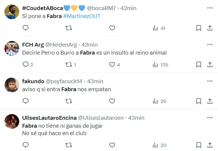 Las críticas de los hinchas de Boca a Fabra en las redes sociales