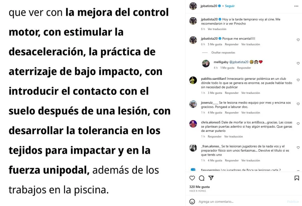 Sin embargo, desde Boca no parecen estar convencidos con los videos que fueron publicados en redes sociales desde que el capitán aterrizó en Florida. Jorge Pablo Batista, médico del club de La Ribera, se mofó de los ejercicios que le fueron preparados al defensor zurdo e ironizó con su más reciente posteo en redes sociales.