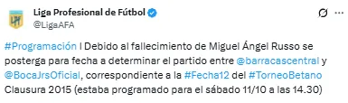 En ese contexto, AFA determinó que se postergue el próximo encuentro del Xeneize. Iba a ser la visita ante Barracas Central por la fecha 12 del Torneo Clausura, el próximo sábado a las 14.30 en el Estadio Claudio Fabián Tapia.