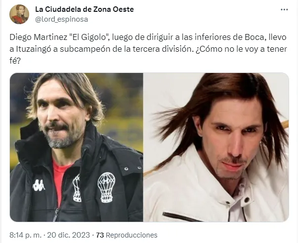 Desde que se conoció la llegada de Martínez a Boca, en las redes sociales los hinchas hicieron diversos memes, en los que comparaban al entrenador con el Gigoló y cómo este convivirá con su nuevo plantel.