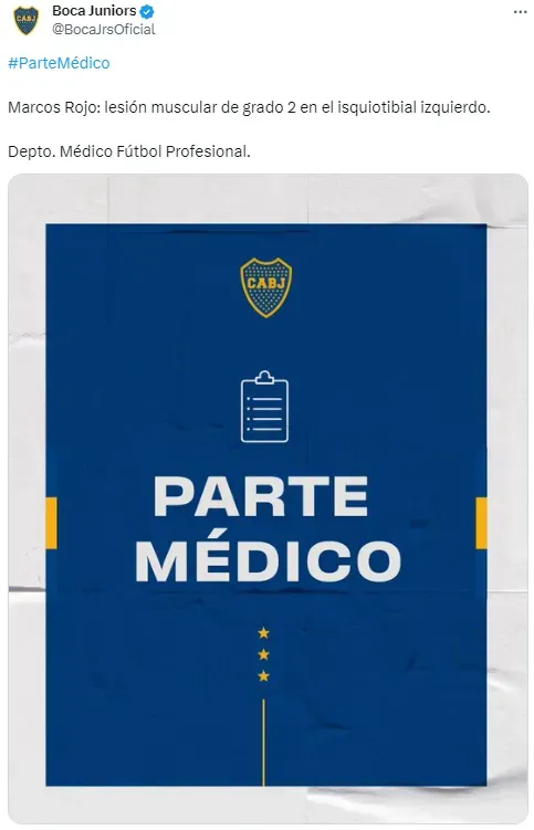 Este lunes se conoció que el capitán de los de azul y oro no pudo terminar la práctica por una molestia y los estudios posteriores arrojaron una pésima noticia para el equipo. “Lesión muscular de grado 2 en el isquiotibial izquierdo“, explicó Boca sobre su desgarro en el parte médico.