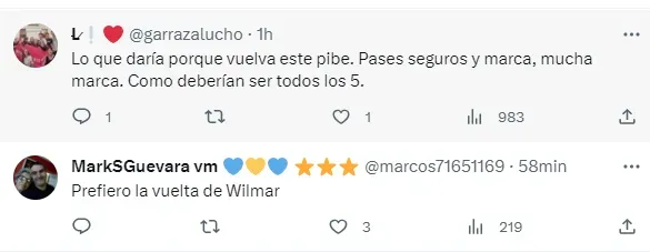 Por su parte, los hinchas del Xeneize, hicieron eco de esta noticia y hubieron opiniones encontradas, ya que algunos daban el visto bueno para su vuelta por ser un chico del club, mientras que otros prefieren que vayan por otros jugadores, como Federico Redondo o Wilmar Barrios.