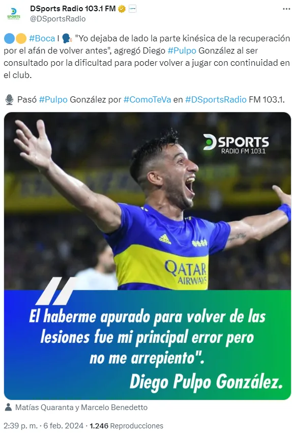 Seguramente Diego González, hoy en Unión Española, jugó mucho menos de lo que esperaba en los 3 años que duró su estadía en Boca. El Pulpo habló en D Sports Radio y analizó su paso por el club, que se terminó el pasado 31 de diciembre luego de no renovar su contrato.