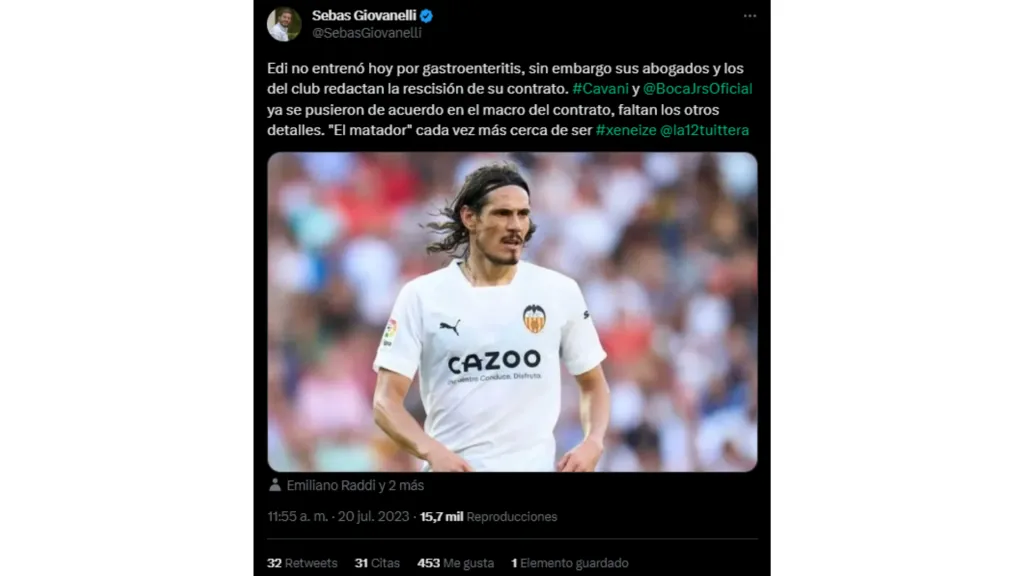 Según informó el periodista uruguayo Sebastián Giovanelli, mientras Cavani no se entrenó este jueves por una gastroenteritis, sus abogados y los del Valencia se reunieron y ya “redactan la rescisión de su contrato”, algo que en lo macro ya estaría acordado y solo restarían pulir detalles para que el “Matador” salga como agente libre, por lo que se encuentra cada vez más cerca de Boca.