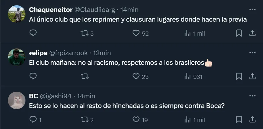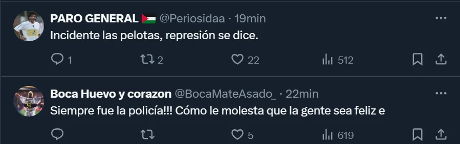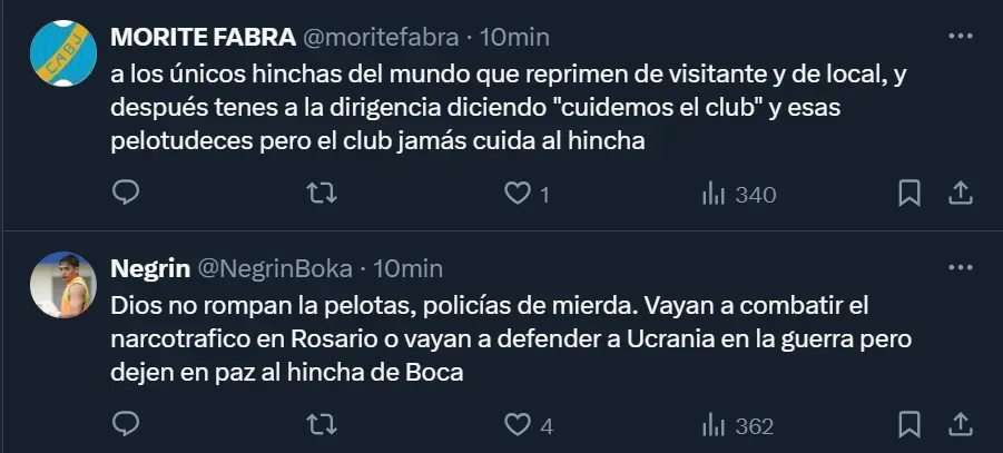 Las críticas de los hinchas de Boca al accionar policial