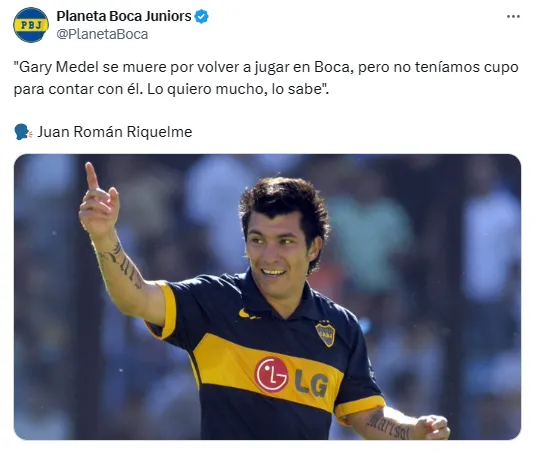 Gary Medel es uno de los ex Boca que más habla con Román, según lo confirmó el propio ídolo boquense. En una entrevista con TyC Sports, Riquelme reveló que el chileno estuvo a punto de volver en 2023, pero a último momento la oportunidad se esfumó.