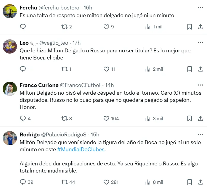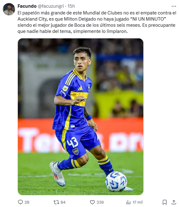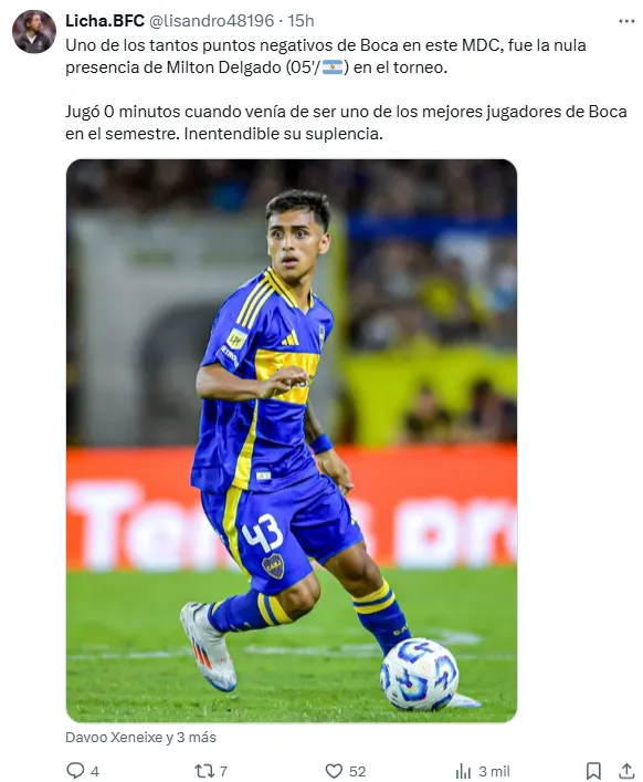 “Es una falta de respeto que no haya jugado”, “alguien debe dar explicaciones”, “inentendible su suplencia“, fueron algunos de los comentarios de los fanáticos del Xeneize, sorprendidos por la falta de minutos en cancha para el joven de 20 años.