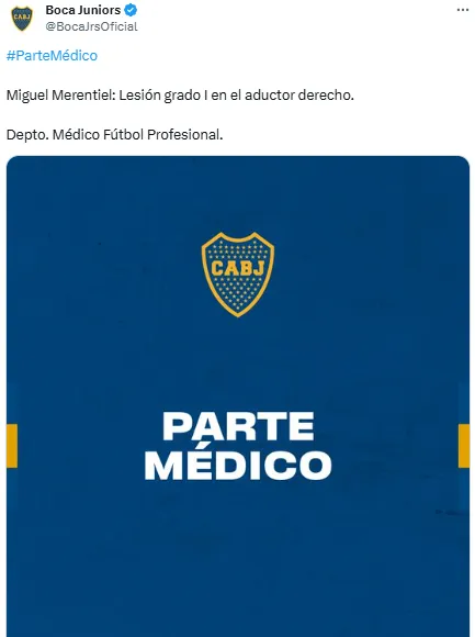 Este sábado, Boca publicó el marte médico del delantero en el que se confirmó tras los estudios que tiene una “lesión grado I en el aductor derecho“. Así, el atacante estará fuera de las canchas por las próximas semanas.