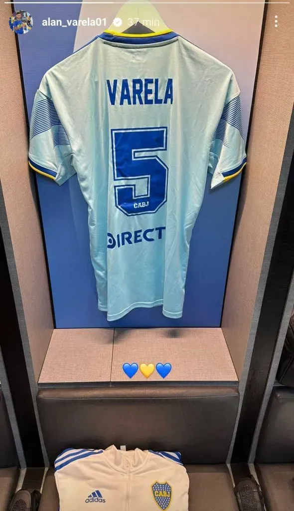 En sus redes sociales, el volante subió una historia que tiene mucho olor a despedida, ya que es una foto con la camiseta de Boca colgada en el vestuario, con la 5 que tiene su nombre, acompañado de tres corazones, con los colores del equipo de La Ribera.