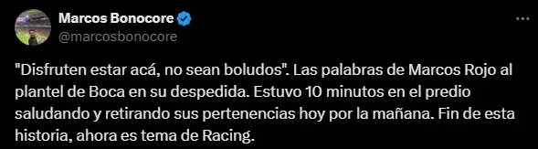 En este contexto, el periodista Marcos Bonocore se encargó de revelar la frase con la que el ahora ex capitán de Boca se despidió del plantel. “Disfruten estar acá, no sean boludos“, expresó el platense hacia el resto de la nómina xeneize en los 10 minutos que estuvo en el Predio antes de decir adiós de manera definitiva. A partir de ahora, los destinos de Boca y de Marcos Rojo seguirán por senderos diferentes.
