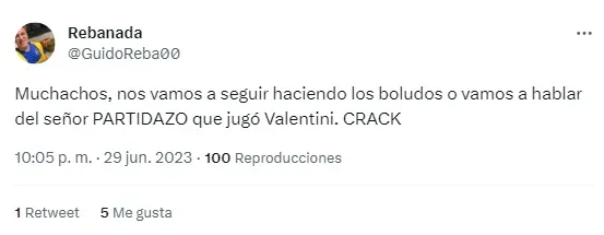 Está claro que los goleadores como Luis Vázquez y Valentín Barco se llevaron la gran mayoría de las miradas. Sin embargo, los hinchas no dejaron pasar la buena actuación de uno de los titulares que venía siendo cuestionado. Tal es así que fue tendencia en Twitter por los comentarios positivos.