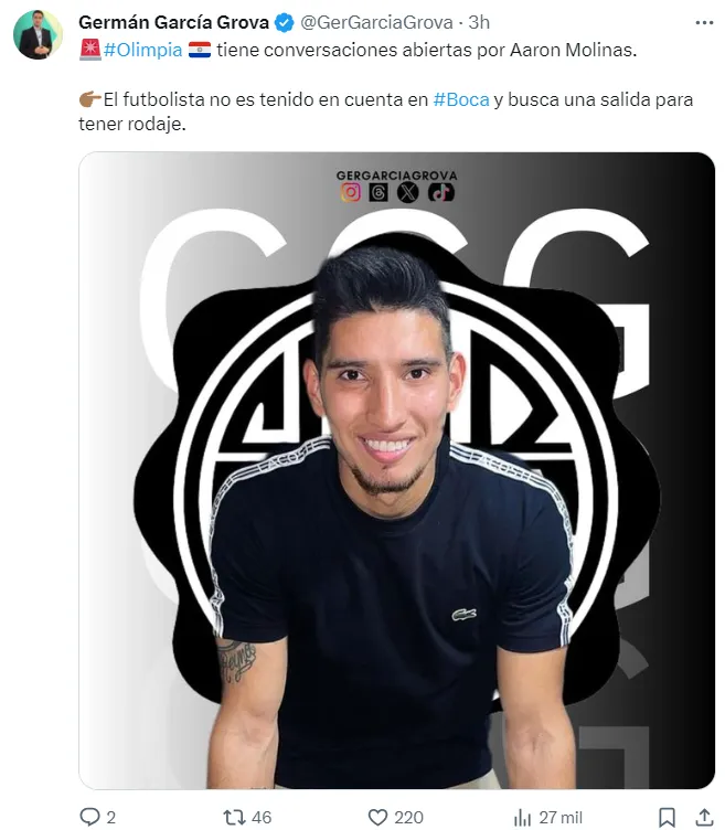 Según informó Germán García Grova, el club paraguayo “tiene conversaciones abiertas” con el mediocampista ofensivo de 23 años. De concretarse, el jugador llegaría a uno de los candidatos y rivales directos de Boca en la CONMEBOL Sudamericana. ¿Chocará contra el Xeneize?