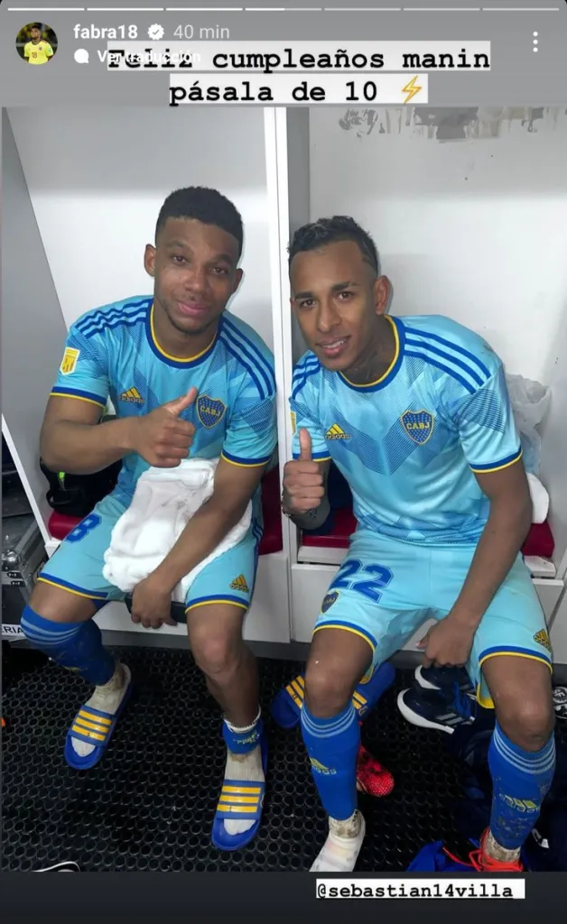 El único jugador que saludó a Villa en las redes fue Frank Fabra. El mensaje del lateral izquierdo llegó a las 23:40, mientras ambos estaban en el vestuario disfrutando de la victoria en La Paternal. De hecho, la imagen que utilizó fue una posterior al encuentro que el Xeneize ganó 1 a 0.