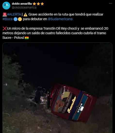 Esta misma ruta es la que Boca deberá realizar en las próximas horas para enfrentar a Nacional Potosí en el debut de la Copa Sudamericana. Al no estar habilitados los vuelos comerciales en el aeropuerto de la ciudad de Potosí, la delegación argentina deberá viajar por tierra desde el aeropuerto de Sucre, atravesando esta peligrosa carretera, que este lunes trajo noticias verdaderamente tristes.